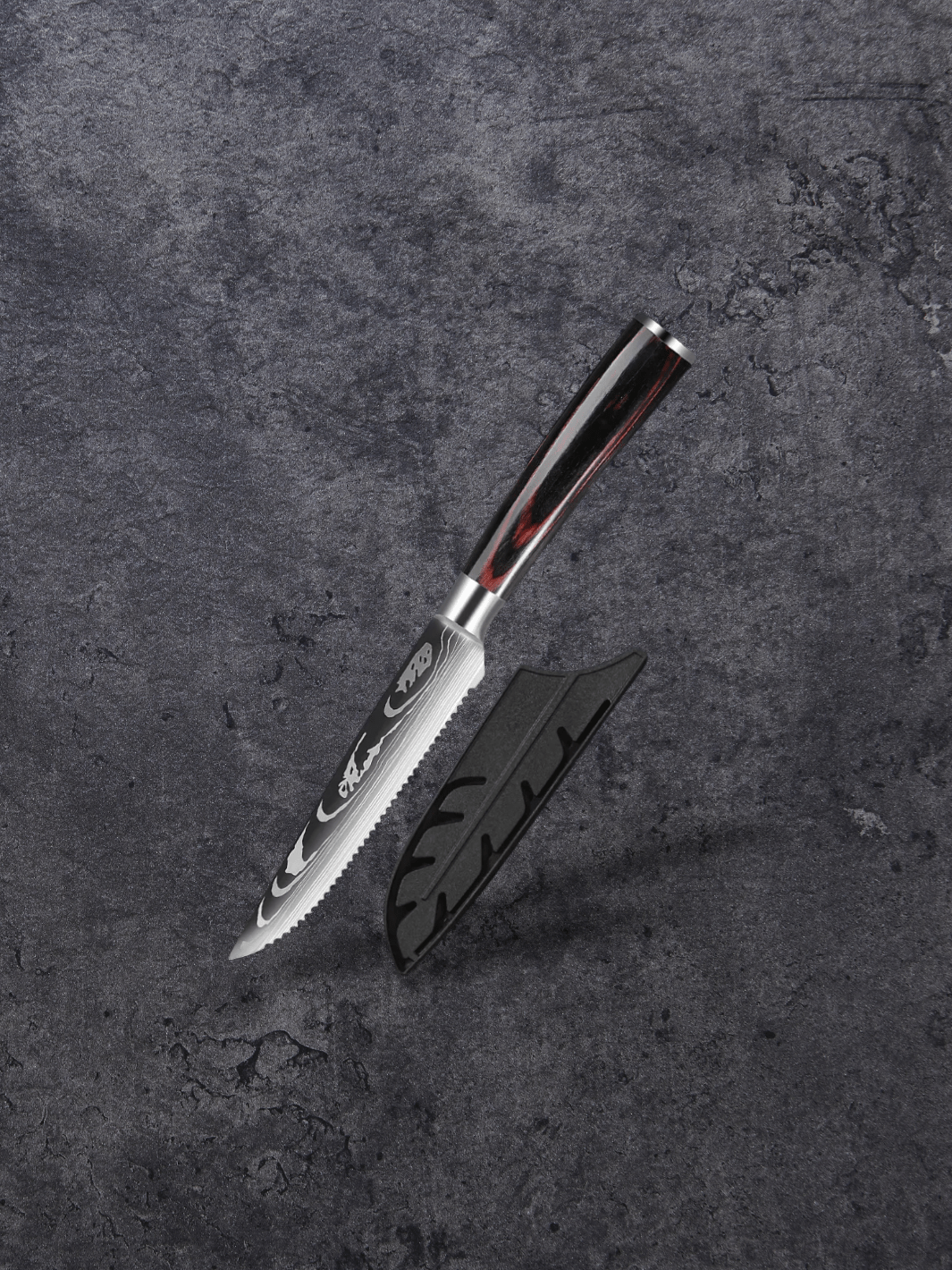 Le Couteau à Steak en Acier Damas est l’outil incontournable pour découper vos viandes avec précision et style. Ce lot de 6 couteaux associe la qualité exceptionnelle de l’acier Damas à un design raffiné pour une expérience de découpe optimale.