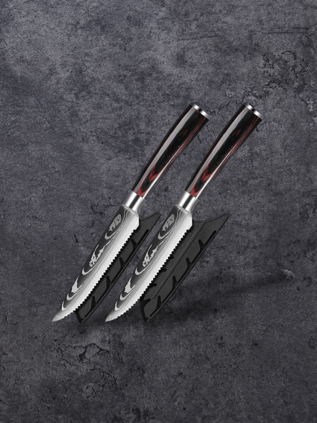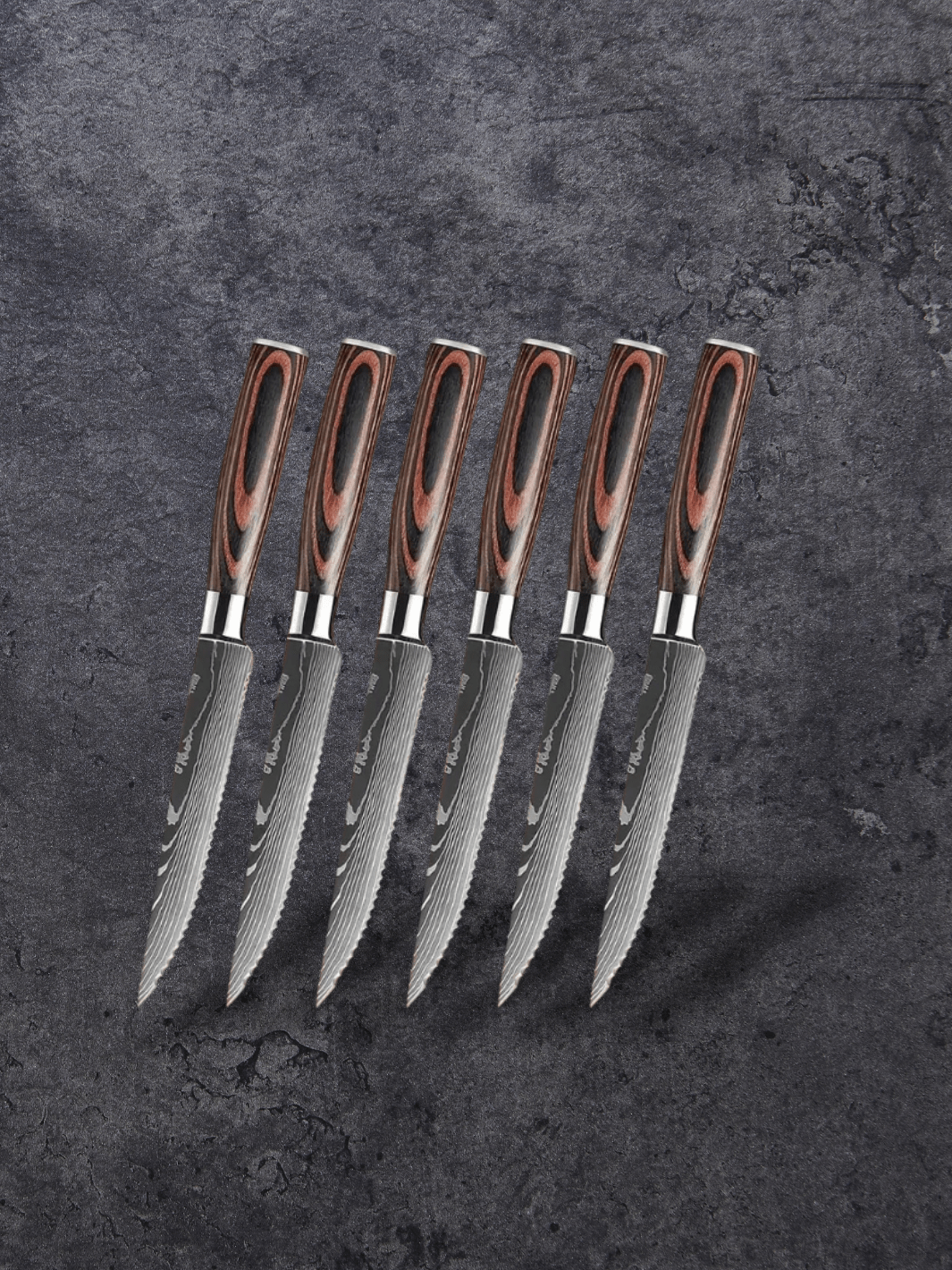 Couteaux à Steak en Acier Damas (Lot de 6) : Tranchant et Élégance